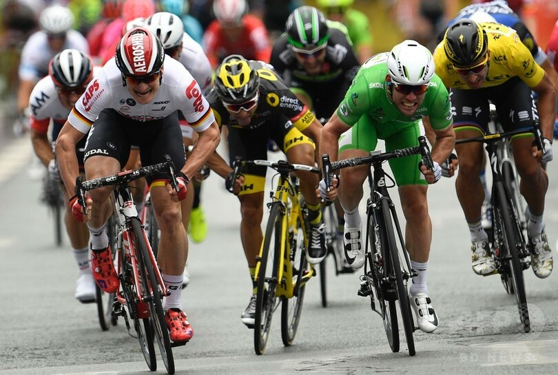 【7月5日 AFP】ツール・ド・フランス(2016 Tour de France)は4日、第3ステージ(グランヴィルからアンジェ、223.5キロメートル)が行われ、ディメンションデータ(Dimension Data)のマーク・カヴェンディッシュ(Mark Cavendish、英国)が僅差でロット・ソウダル(Lotto Soudal)のアンドレ・グライペル(Andre Greipel、ドイツ)をかわし、ステージ優勝を果たした。