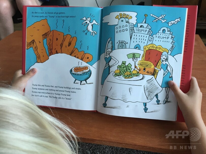 32ページに及ぶこの本にはお世辞やごますりは一切なく、トランプ氏をもつれた明るい黄色の髪をした金遣いの荒い大ぼら吹きの生き物として表現し、文章には「その生き物は『アメリカントランプ』。肌は鮮やかなオレンジ色でぽっちゃりとした姿かたち」とある。