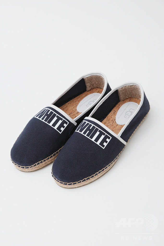 「UGG®」のリラックス感溢れるコンテンポラリー・カリフォルニア・カジュアル・スタイルを踏襲するアイテムは、夏にぴったりのエスパドリーユ「カス」をベースにデザイン。アイコニックなディティールである天然ウールをヒール内に採用し、履き心地も抜群だ。コラボレーションを象徴する‘WHITE’のボックスロゴはネイビーアッパーに大胆にプリントされ、ロゴと同色のホワイトカラーがレザーパイピングやヒール部分にアクセントを添えている。「UGG®」と「ホワイトマウンテニアリング」のダブルロゴはヒールレザーにエンボス加工された。