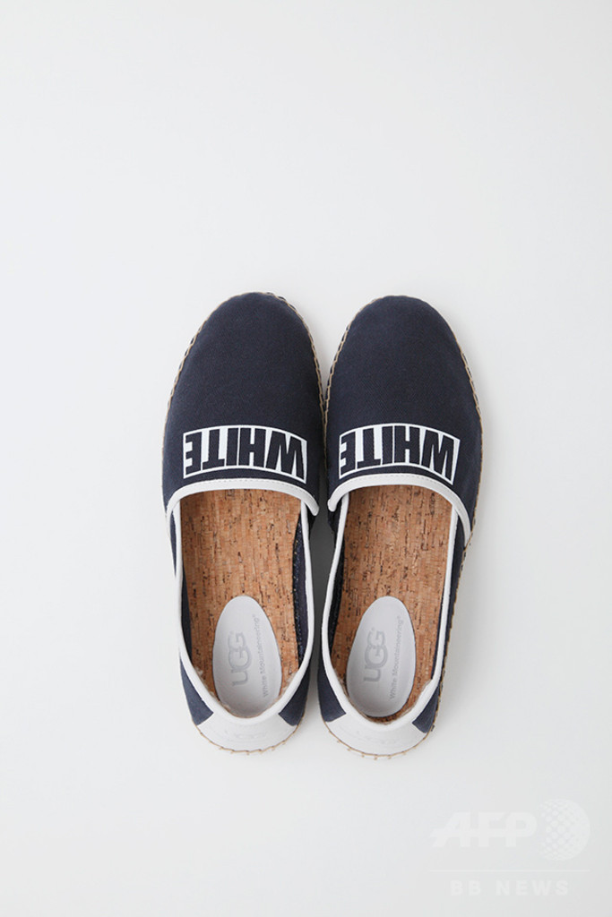 「UGG®」のリラックス感溢れるコンテンポラリー・カリフォルニア・カジュアル・スタイルを踏襲するアイテムは、夏にぴったりのエスパドリーユ「カス」をベースにデザイン。アイコニックなディティールである天然ウールをヒール内に採用し、履き心地も抜群だ。コラボレーションを象徴する‘WHITE’のボックスロゴはネイビーアッパーに大胆にプリントされ、ロゴと同色のホワイトカラーがレザーパイピングやヒール部分にアクセントを添えている。「UGG®」と「ホワイトマウンテニアリング」のダブルロゴはヒールレザーにエンボス加工された。