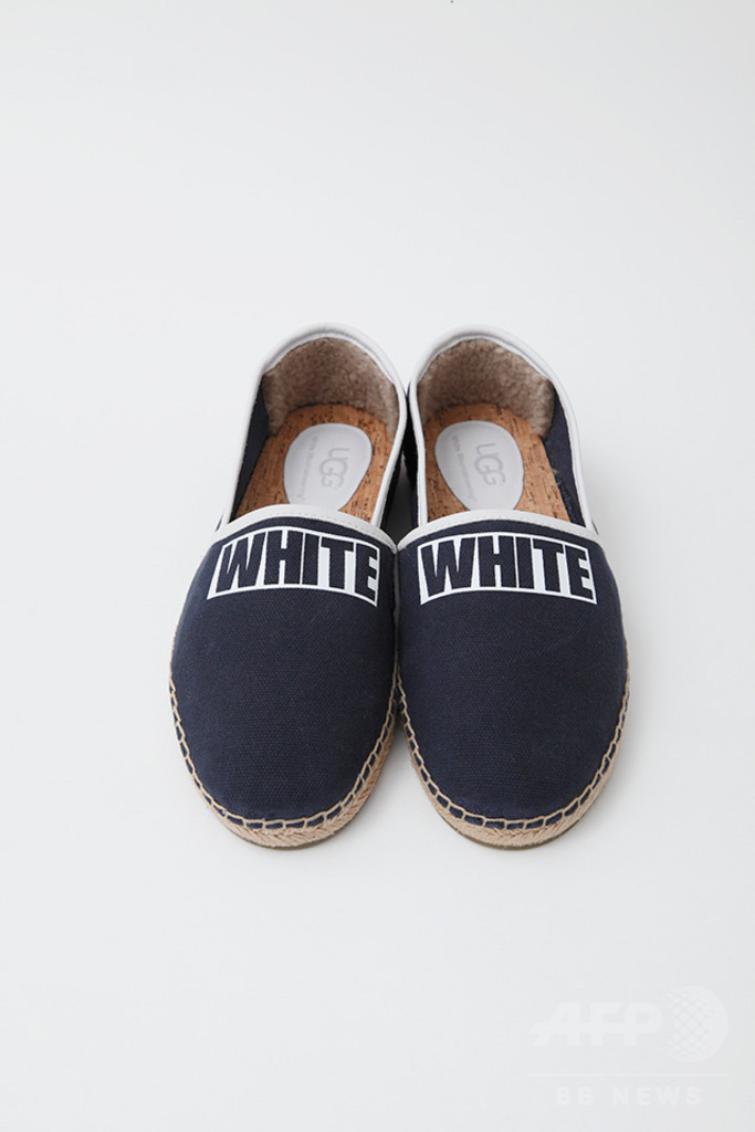 「UGG®」のリラックス感溢れるコンテンポラリー・カリフォルニア・カジュアル・スタイルを踏襲するアイテムは、夏にぴったりのエスパドリーユ「カス」をベースにデザイン。アイコニックなディティールである天然ウールをヒール内に採用し、履き心地も抜群だ。コラボレーションを象徴する‘WHITE’のボックスロゴはネイビーアッパーに大胆にプリントされ、ロゴと同色のホワイトカラーがレザーパイピングやヒール部分にアクセントを添えている。「UGG®」と「ホワイトマウンテニアリング」のダブルロゴはヒールレザーにエンボス加工された。