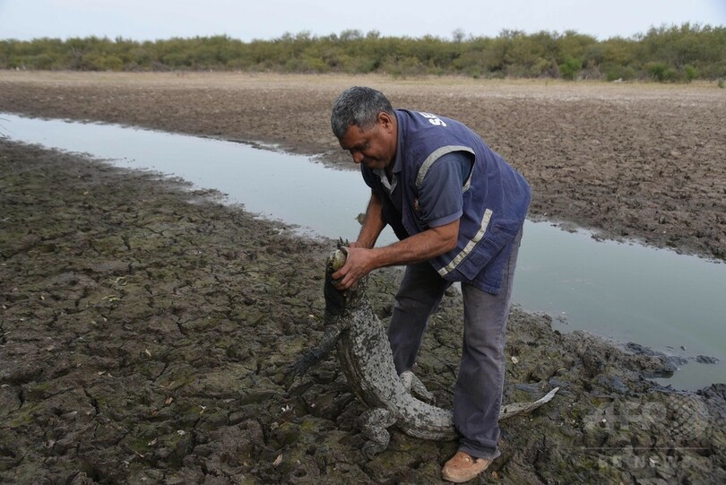 【7月18日 AFP】パラグアイの一部が過去19年で最悪の干ばつに見舞われ、数千匹のワニが生存の危機に陥っている。
