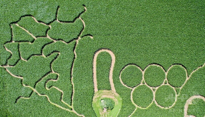 ドイツ版「田んぼアート」? トウモロコシ畑に五輪マーク出現