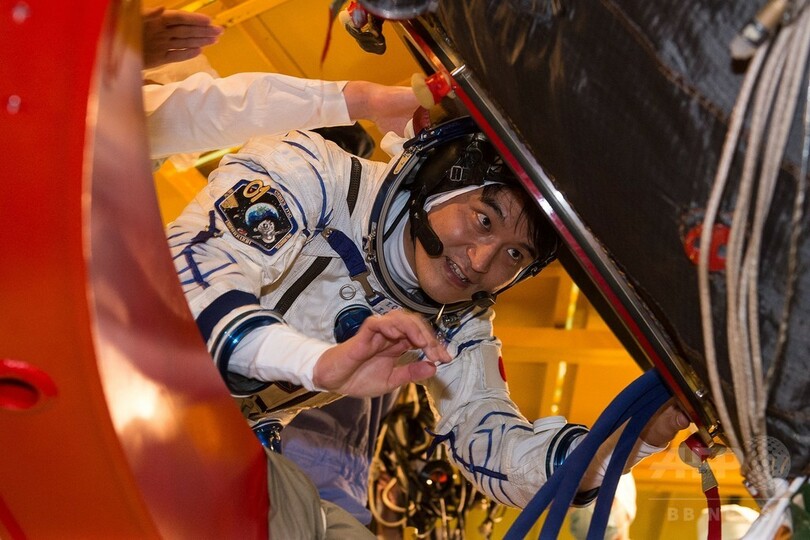 大西さんは民間航空機のパイロット出身で、宇宙に行く日本人としては11人目となる。NASAのライブ中継では、大西さんとイバニシン飛行士が打ち上げ成功を祝って拳をぶつけ合う様子が映された。今回の打ち上げは、新型ソユーズのソフトウエア試験のため2週間延期されていた。(c)AFP/Vasily MAXIMOV