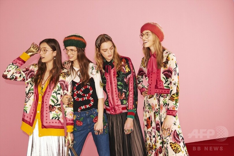 ウィメンズ ウェアおよびアクセサリーからなる同コレクションは、クリエイティブ・ディレクター、アレッサンドロ・ミケーレ(Alessandro Michele)による、ブランドアイコンの動植物を取り入れた新しいプリントが特徴だ。咲き乱れるカーネーションやローズに囲まれて顔を出すのは、カラフルなバタフライ、てんとう虫、小鳥、カブトムシ。中でもヨーロッパ貴族社会のシンボルとされるビー(ハチ)と英知・権威を象徴するスネークは、中心的な役割を果たしている。