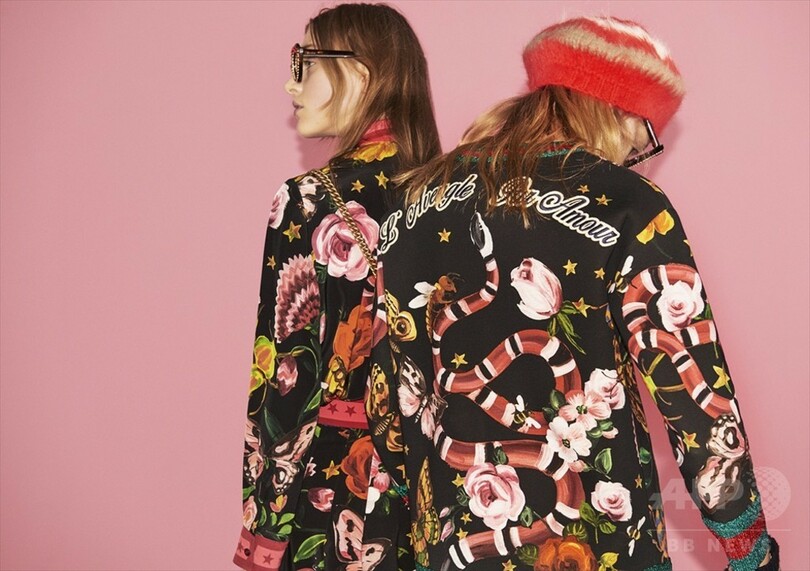 ウィメンズ ウェアおよびアクセサリーからなる同コレクションは、クリエイティブ・ディレクター、アレッサンドロ・ミケーレ(Alessandro Michele)による、ブランドアイコンの動植物を取り入れた新しいプリントが特徴だ。咲き乱れるカーネーションやローズに囲まれて顔を出すのは、カラフルなバタフライ、てんとう虫、小鳥、カブトムシ。中でもヨーロッパ貴族社会のシンボルとされるビー(ハチ)と英知・権威を象徴するスネークは、中心的な役割を果たしている。