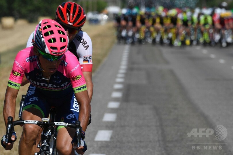 新城は、ステージ優勝を飾ったディメンションデータ(Dimension Data)のマーク・カヴェンディッシュ(Mark Cavendish、英国)と4秒差の132位でステージを終えている。(c)AFP