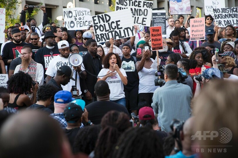 【7月8日 AFP】(更新)米テキサス(Texas)州ダラス(Dallas)で7日夜、黒人男性2人が相次いで警察に射殺された事件に抗議するデモで警官が撃たれ、4人が死亡、少なくとも7人が負傷した。地元警察当局が発表した。市民1人も軽傷を負ったという。