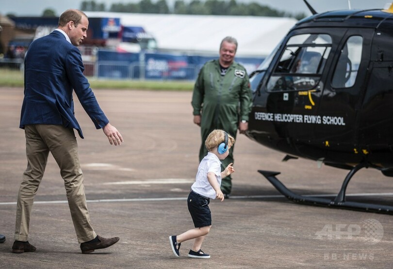 この日、夫妻と共に今月3歳になるジョージ王子が訪れたのはイングランド(England)南西部フェアフォード(Fairford)空軍基地で開催された世界最大級の軍用機の航空ショー「インターナショナル・エアタトゥー」(International Air Tattoo)。