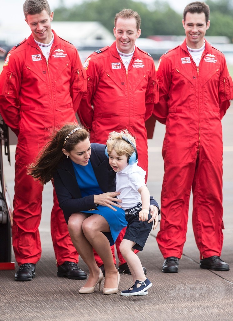 この日、夫妻と共に今月3歳になるジョージ王子が訪れたのはイングランド(England)南西部フェアフォード(Fairford)空軍基地で開催された世界最大級の軍用機の航空ショー「インターナショナル・エアタトゥー」(International Air Tattoo)。