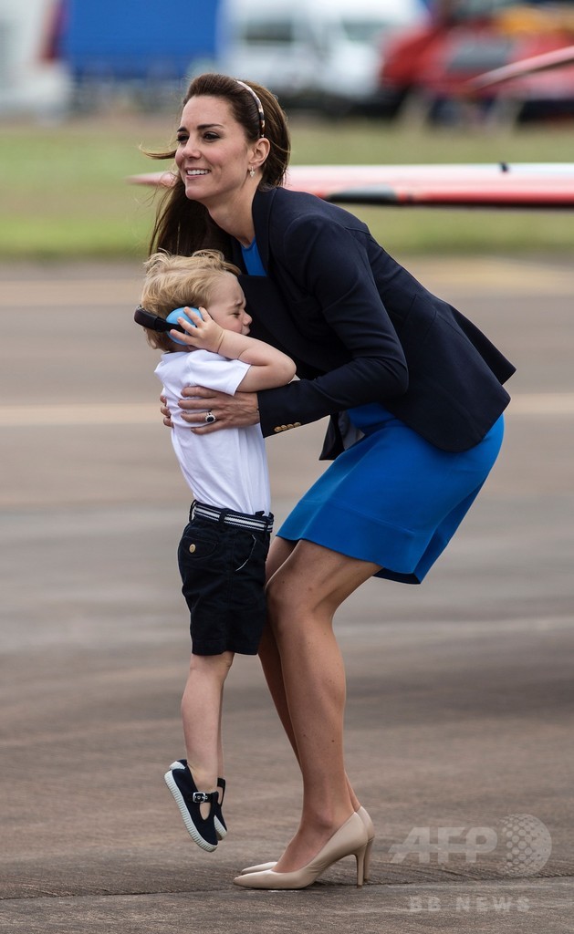 この日、夫妻と共に今月3歳になるジョージ王子が訪れたのはイングランド(England)南西部フェアフォード(Fairford)空軍基地で開催された世界最大級の軍用機の航空ショー「インターナショナル・エアタトゥー」(International Air Tattoo)。