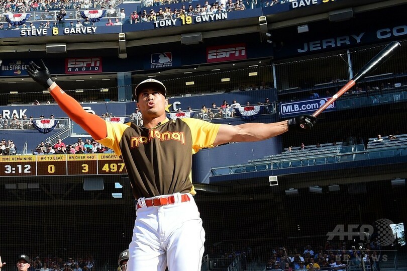 【7月12日 AFP】MLBオールスターゲーム2016(2016 All-Star Game)開催を翌日に控えた11日、毎年恒例の本塁打競争が行われ、マイアミ・マーリンズ(Miami Marlins)のジャンカルロ・スタントン(Giancarlo Stanton)が、前回覇者でシカゴ・ホワイトソックス(Chicago White Sox)のトッド・フレイザー(Todd Frazier)との決勝ラウンドを20-13で制し、優勝を果たした。