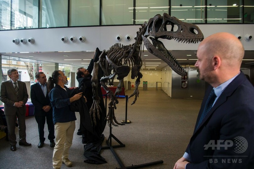 外見はおおよそT・レックスに似ているが、グアリチョの前肢は独自に進化しており、恐竜の進化過程を解明する新たな手掛かりとなることが期待される。(c)AFP/Sebastian VARELA