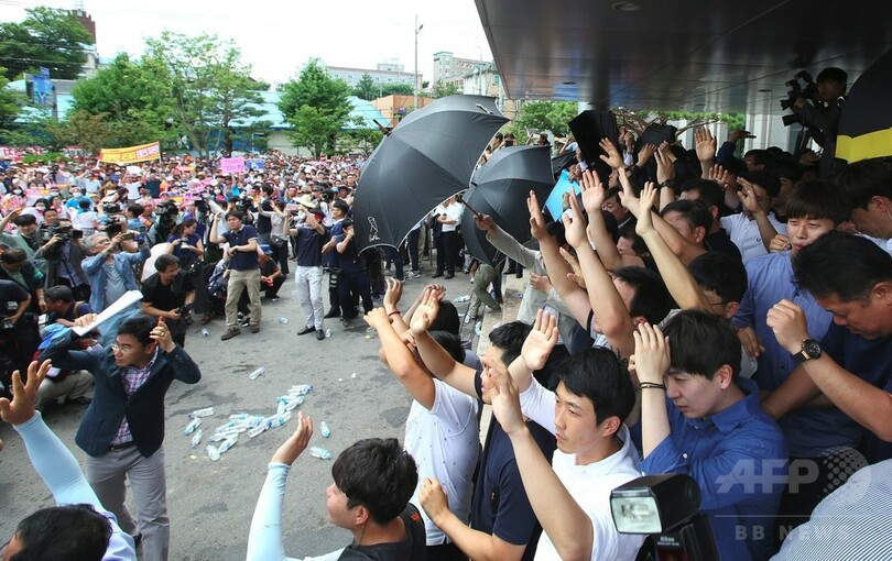【7月15日 AFP】韓国で15日、米軍の迎撃システム配備が決まった南部・慶尚北(North Gyeongsang)道の星州(Seongju)を訪れた黄教安(ファン・ギョアン、Hwang Kyo-Ahn)首相に対し、怒った地元住民が生卵やペットボトルを投げつける騒動が起きた。