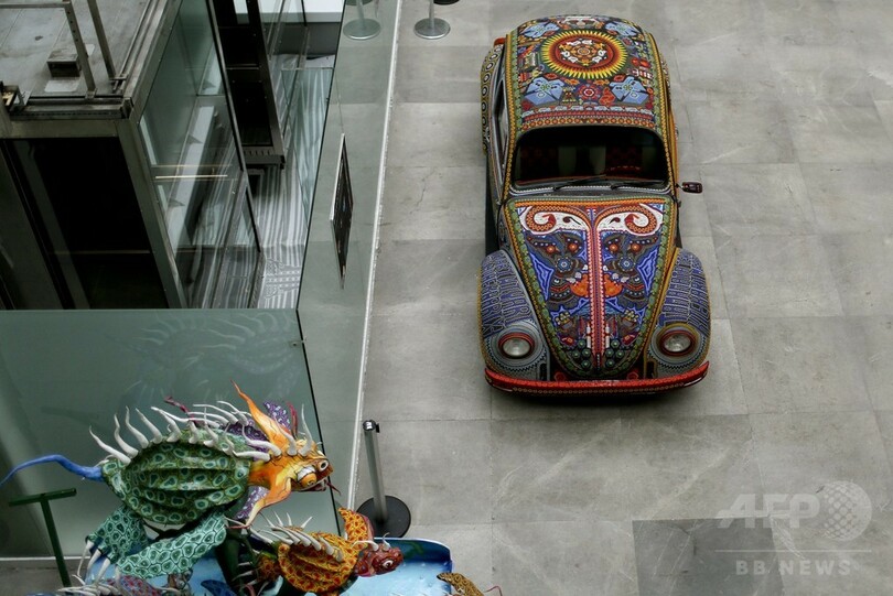 【7月17日 AFP】メキシコの首都メキシコ市(Mexico City)の民芸美術館(Folk Art Museum)に、メキシコ先住民ウイチョル(Huichol)のアーティストがビーズアート「チャキラ」用のビーズ227万7000個で装飾を施した独自動車大手フォルクスワーゲン(VW)製セダン「ボチョル(Vochol)」が展示されている。同車は2010年以降、米国、欧州、アジア、南米の複数の美術館で巡回展示されている。(c)AFP