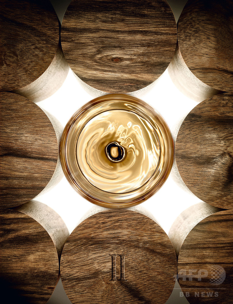 非常に複雑なレイヤーによって生み出された透明感のあるイエローゴールドの輝きは、それぞれの個性を保ちながらも完璧な調和を兼ね備え、フレッシュでエレガント、多面性が感じられる味わいとなっている。ボトルデザインにも3つの要素をちりばめ、メタルはキャップやボトル底に光るプレート、ウッドはボトルを包むコフレボックス、ガラスは漆黒のボトルとして取り入れられた。
