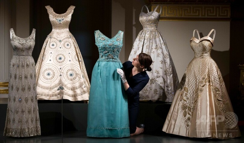 【7月22日 AFP】英国の首都ロンドン(London)のバッキンガム宮殿(Buckingham Palace)で21日、エリザベス女王(Queen Elizabeth II)がこれまで公式行事などで着用した衣装や装飾品などを集めた展覧会「Fashioning a Reign:90 Years of Style from The Queen's Wardrobe」が、23日の開幕に先駆けて報道陣に公開された。