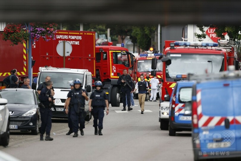 【7月26日 AFP】(更新、写真追加)フランス北部ルーアン(Rouen)近郊にある教会に26日、ナイフを持った2人組が押し入り、人質となった司祭1人が殺害された。また人質もう1人が重体だという。仏内務省は襲撃した2人を警察が殺害したと発表した。