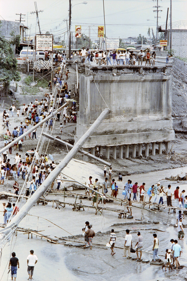 マニラから北へ約100キロにあるピナツボ山は、その数か月前から活動が活発になっていた。私は観測所に詰めている政府の科学者たちを撮影するために2度ほど、熱帯の植物が生い茂る登山道を1時間かけて訪れていた。6月初めには、ピナツボ山の西側の山腹にある集落はゴーストタウンと化していた。フィリピン火山地震研究所(Philippine Institute of Volcanology and Seismology)が山頂から半径10キロの範囲を「危険地帯」に指定し、政府が住民を強制退去させたためだ。同研究所が数日以内の噴火を予測すると、私たちはその一帯に6月13日に戻った。