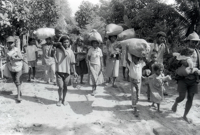 それから3、4時間後に幹線道路に到達し、米軍の海軍基地がある北部の港湾都市オロンガポ(Olongapo)へ向かった。そこなら安全だと思ったからだ。だが1時間後、途中の村の住民が、噴火で降った砂のせいで街への道路は封鎖されていると教えてくれた。そこで私たちは元の場所、ピナツボ火山のふもとへと引き返した。
