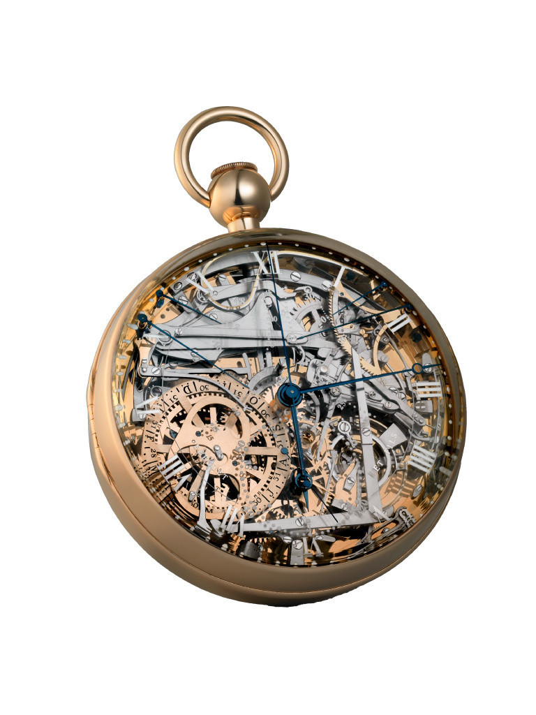 実はマリー・アントワネット(Marie-Antoinette)は「ブレゲ」の熱心な顧客だったという。1782年にカレンダーとリピーター機能を備えた自動巻き時計を注文して以来、その精巧で見事な時計に魅せられ、生涯の終わりまでひいきにしたと知られている。中でも王妃が注文した、あらゆる複雑機構と最新技術を組み込んだ懐中時計は伝説だ。製作期間も費用も一切限度がなく、オーダーから44年後、王妃の死から34年後、さらにアブラアン-ルイ・ブレゲ(Abraham-Louis Breguet)本人の死から4年後に完成したという前代未聞のタイムピースなのだ。