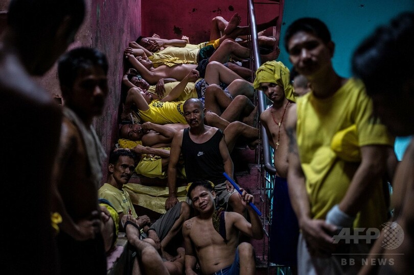 【7月31日 AFP】フィリピン警察が前代未聞の規模で犯罪撲滅に努めている影響でいま、同国の拘置所は収容者であふれ返っている。首都マニラ(Manila)のケソン市(Quezon City)にある、およそ60年前に建てられた定員800人の拘置所には3800人が収容され、収容者たちは床のひび割れた屋外バスケットボール場、階段、ベッドの下、古い毛布で作られたハンモックなどで順番に睡眠をとっている。(c)AFP