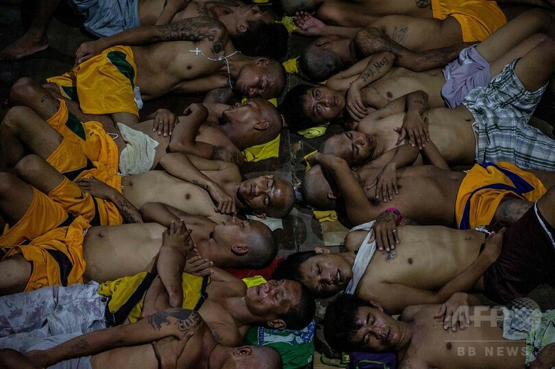 【7月31日 AFP】フィリピン警察が前代未聞の規模で犯罪撲滅に努めている影響でいま、同国の拘置所は収容者であふれ返っている。首都マニラ(Manila)のケソン市(Quezon City)にある、およそ60年前に建てられた定員800人の拘置所には3800人が収容され、収容者たちは床のひび割れた屋外バスケットボール場、階段、ベッドの下、古い毛布で作られたハンモックなどで順番に睡眠をとっている。(c)AFP