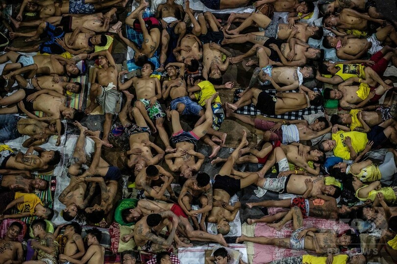 【7月31日 AFP】フィリピン警察が前代未聞の規模で犯罪撲滅に努めている影響でいま、同国の拘置所は収容者であふれ返っている。首都マニラ(Manila)のケソン市(Quezon City)にある、およそ60年前に建てられた定員800人の拘置所には3800人が収容され、収容者たちは床のひび割れた屋外バスケットボール場、階段、ベッドの下、古い毛布で作られたハンモックなどで順番に睡眠をとっている。(c)AFP