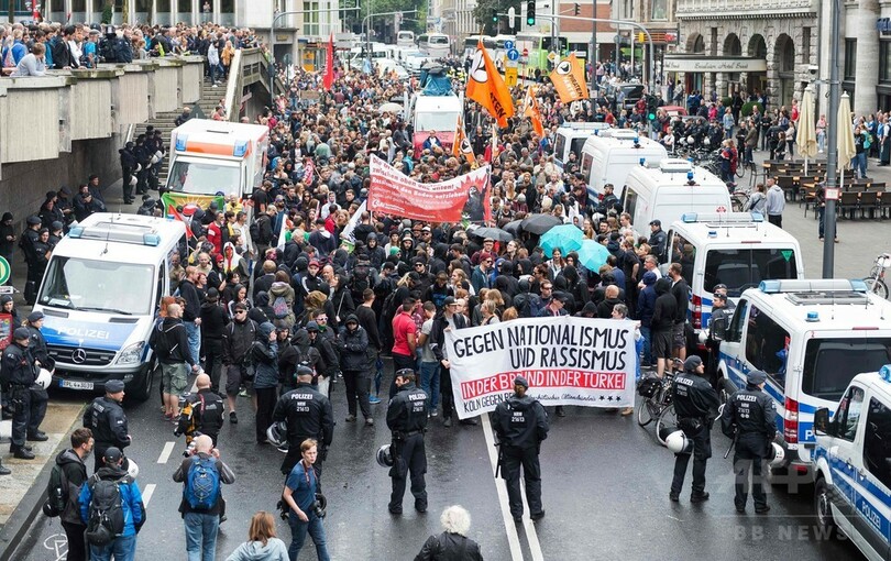 集会は親エルドアンの欧州トルコ民主連合(UETD)などが主催。より規模の小さいカウンター(対抗)デモも起き、警察が一部の右翼ナショナリストのトルコ人やクルド人を排除した。