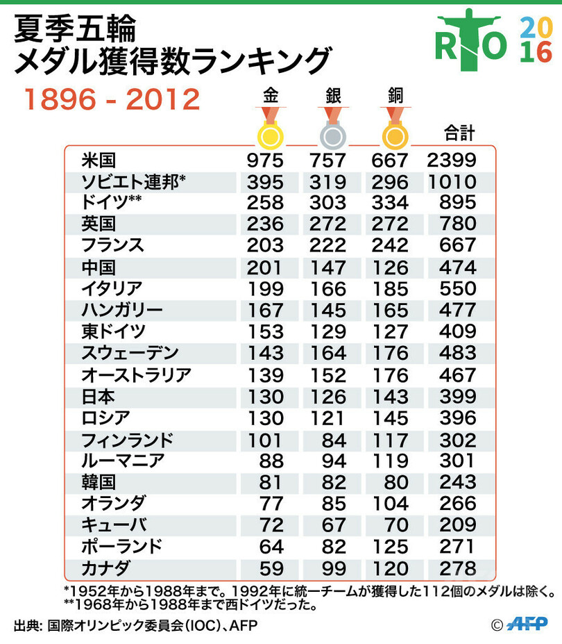 五輪 図解 【図解】夏季五輪の通算メダル獲得数ランキング 2016年8月2日 6:45 発信地:パリ/フランス [ ヨーロッパ フランス ] このニュースをシェア 夏季五輪の通算メダル獲得数ランキングを示した図解(2016年7月20日作成)。(c)AFP 【8月2日 AFP】夏季五輪の通算メダル獲得数ランキングを示した図解。(c)AFP 五輪 一覧へ> メディア・報道関係・法人の方向け 写真・動画 購入のお問合せ>