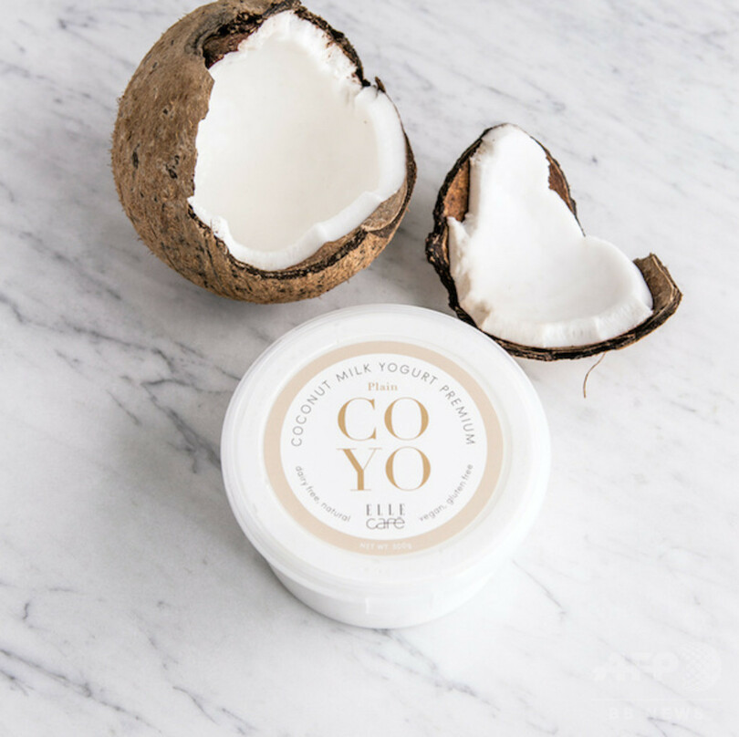「コヨ」は「ココナッツヨーグルト」の略で、100%植物性のスイーツのこと。ココナッツミルクをベースに、低糖質、ラクトースフリー(乳製品不使用)、グルテンフリー(小麦粉不使用)、無添加で仕上げたヘルシーな植物性ヨーグルト。脂肪燃焼や新陳代謝アップ、クレンズ(整腸)効果が期待できる。