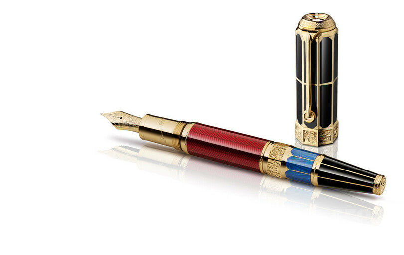 また「ウィリアム・シェイクスピア リミテッドエディション1597」は、シェイクスピアの最も有名な戯曲「ロミオとジュリエットの悲劇」が出版された年にちなんだ限定数(世界限定1597点)で登場。ペン先には有名なバルコニーのシーンを描き、漆黒・深紅・ロイヤルブルーのボディに黒のラッカー仕上げのキャップをあわせたコントラストが、重厚感を演出する。アイコニックなゴールドリングは、キャップとボディの2箇所に配された。