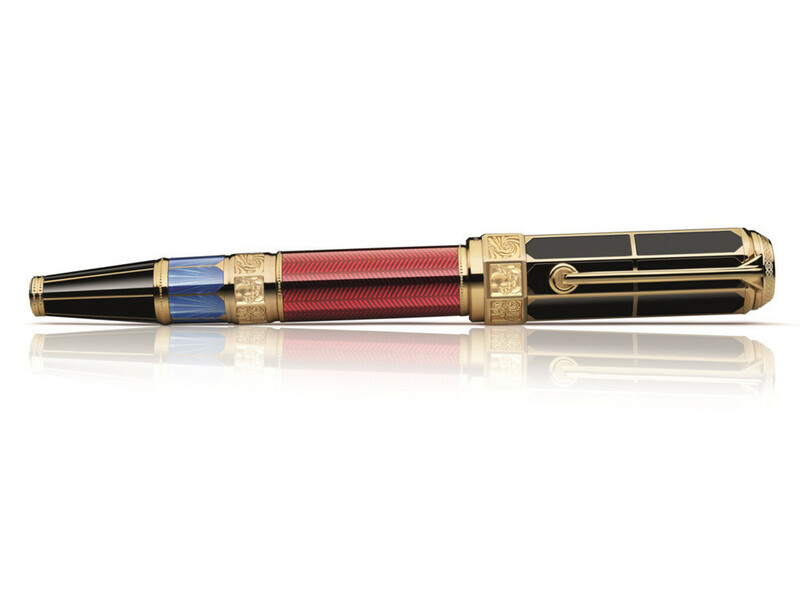 また「ウィリアム・シェイクスピア リミテッドエディション1597」は、シェイクスピアの最も有名な戯曲「ロミオとジュリエットの悲劇」が出版された年にちなんだ限定数(世界限定1597点)で登場。ペン先には有名なバルコニーのシーンを描き、漆黒・深紅・ロイヤルブルーのボディに黒のラッカー仕上げのキャップをあわせたコントラストが、重厚感を演出する。アイコニックなゴールドリングは、キャップとボディの2箇所に配された。