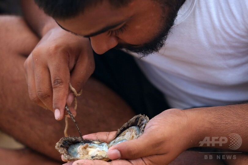 【8月3日 AFP】クウェートの首都クウェート市(Kuwait City)から約100キロメートル南に位置する港町カイラン(Khairan)では真珠採りのシーズンを迎え、ダイバーたちが昔ながらのダウ船を使って真珠貝を採取する姿が見られた。(c)AFP
