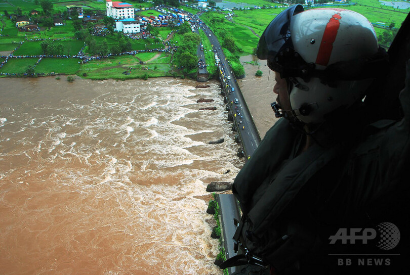 【8月3日 AFP】(写真追加)インド西部ムンバイ(Mumbai)南方のライガド(Raigad)県で2日夜、モンスーンの豪雨による洪水で橋が崩壊し、バス2台が川に転落した。当局によると、現場に駆け付けた救助隊が3日、2人の遺体を収容したものの、今も20人が行方不明になっており、懸命の捜索活動が行われているという。