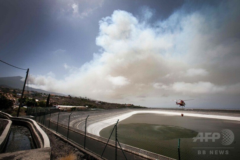 カナリア諸島緊急対策本部の報道官によると、約200人が消火活動を行っており、ヘリコプターや飛行機も出動しているが、高温と強風で火があおられ、消火活動は困難を極めているという。(c)AFP
