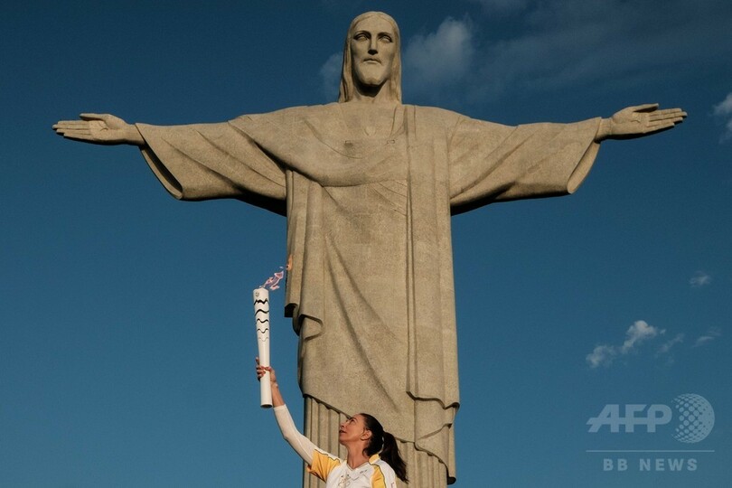 【8月5日 AFP】ブラジル・リオデジャネイロ(Rio de Janeiro)で5日、同日夜に開幕するリオデジャネイロ五輪の聖火リレーが、コルコバード(Corcovado)の丘に立つキリスト像(Christ the Redeemer)など市内の名所を巡った。(c)AFP