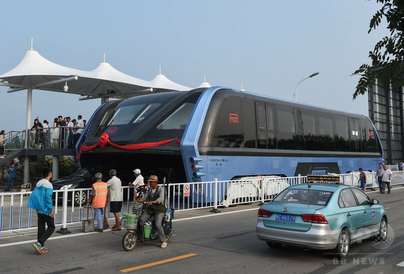 【8月6日 AFP】中国で今週お披露目され、未来的な公共交通機関として世界各国で報道された、道路の上をまたぐようにして走るバスについて、同国メディアから実現可能性や開発費用の捻出方法を疑問視する声が上がっている。