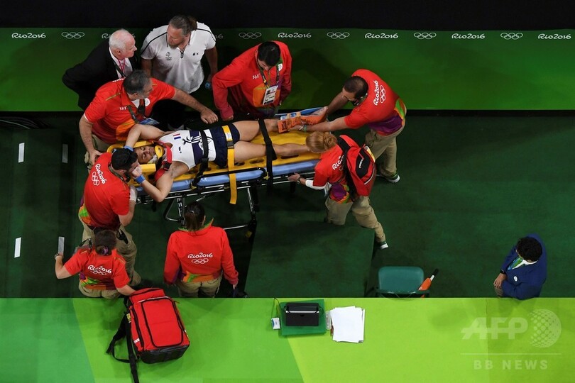 リオ・オリンピック・アリーナ(Rio Olympic Arena)のマットに倒れたアイ・サイドは脚を押さえながら苦痛にうめき、見た目にもはっきり折れ曲がった脚に、観客はおののいて息をのんだ。アイ・サイドはその場で数分間治療を受けた後、拍手を浴びながら担架で運び出された。