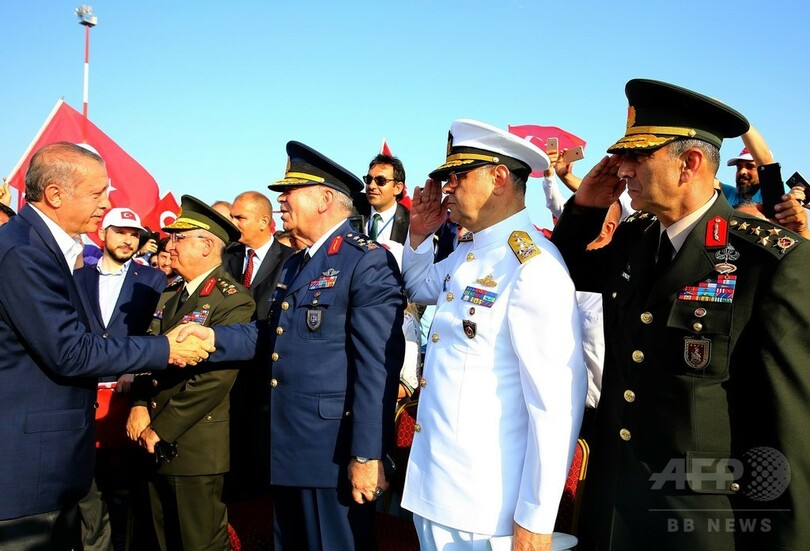 演説を行ったエルドアン大統領は死刑制度の復活についても言及し、国民が死刑復活を求めれば各政党は国民の意思を尊重するはずだと強調。「主権が国民にある以上、死刑制度について決めるのは議会だ。議会が決定すれば承認する」と踏み込んだ。(c)AFP/Fulya Ozerkan with Raziye Akkoc in Ankara