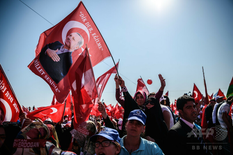 【8月8日 AFP】トルコの最大都市イスタンブール(Istanbul)で7日、先月のクーデター未遂に抗議する大規模集会がレジェプ・タイップ・エルドアン (Recep Tayyip Erdogan)大統領の呼び掛けで開かれた。野党の党首らも参加して事件の首謀者らに対して団結を示した形で、政権寄りのメディアや当局者は数百万人が集まったとしている。