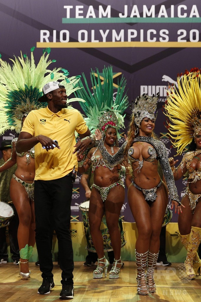 報道陣と談笑し、半裸のサンバダンサーと一緒に踊ったボルトは、「3大会連続3冠」の準備は整っていると宣言した。