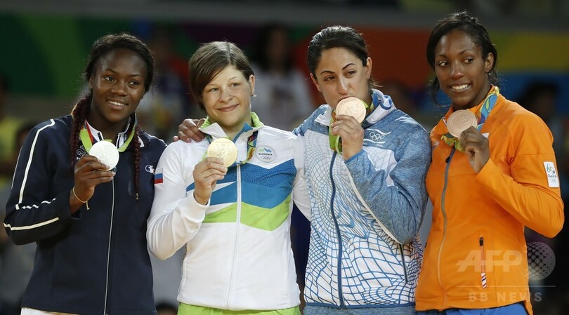 2013年の世界女王ヤーデン・ジェルビ(Yarden Gerbi、イスラエル)とオランダのアニカ・ファンエムデン(Anicka van Emden)が銅メダルを獲得し、田代未来(Miku Tashiro)は3位決定戦に敗れメダルを逃した。(c)AFP