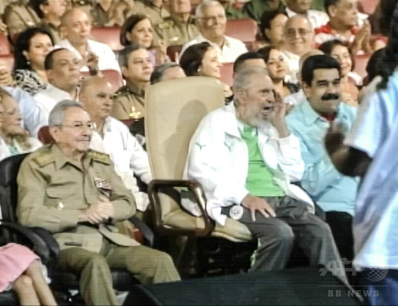 この日地元のテレビは、カストロ氏が久々に公の場に登場した場面を生中継で伝えた。カストロ氏は白いトラックジャケットを着て、首都ハバナ(Havana)市内にある国内最大規模のカール・マルクス劇場(Karl Marx Theater)で行われた児童劇団の催しに、弟のラウル・カストロ(Raul Castro)国家評議会議長や、ベネズエラのニコラス・マドゥロ(Nicolas Maduro)大統領と共に出席した。公の場に姿を見せたのは、4月19日に行われたキューバ共産党大会の閉幕式以来。