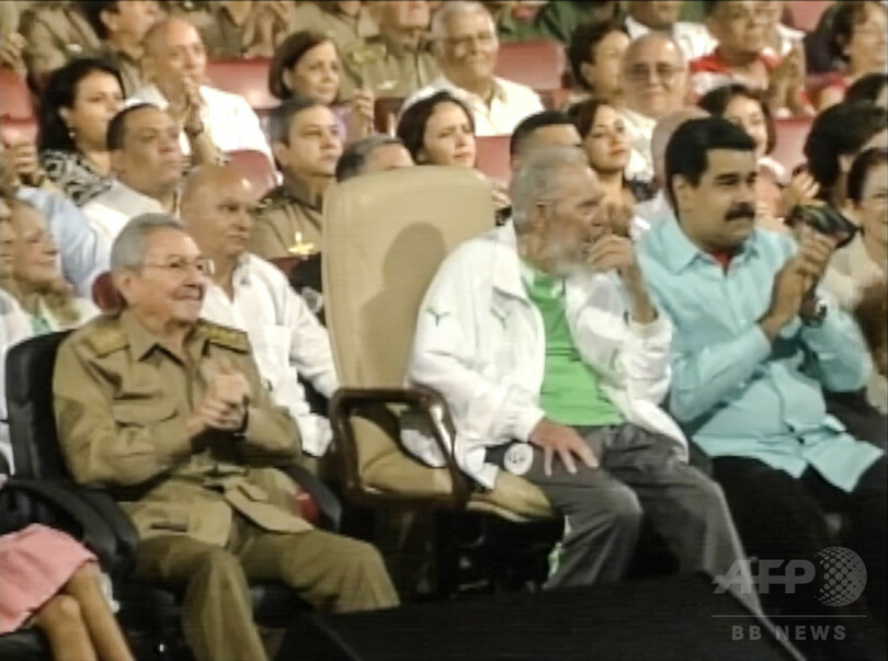 この日地元のテレビは、カストロ氏が久々に公の場に登場した場面を生中継で伝えた。カストロ氏は白いトラックジャケットを着て、首都ハバナ(Havana)市内にある国内最大規模のカール・マルクス劇場(Karl Marx Theater)で行われた児童劇団の催しに、弟のラウル・カストロ(Raul Castro)国家評議会議長や、ベネズエラのニコラス・マドゥロ(Nicolas Maduro)大統領と共に出席した。公の場に姿を見せたのは、4月19日に行われたキューバ共産党大会の閉幕式以来。