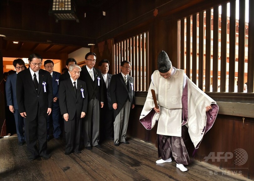 安倍首相、靖国神社に玉串料奉納 議員ら集団参拝