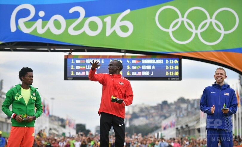 【8月22日 AFP】リオデジャネイロ五輪は21日、陸上男子マラソンが行われ、優勝候補の大本命に挙げられていたエリウド・キプチョゲ(Eliud Kipchoge、ケニア)が、2時間8分44秒で金メダルに輝いた。キプチョゲはこれで出場したマラソン大会の通算成績を8戦7勝としている。