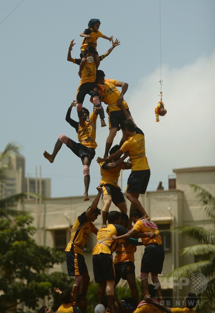 「ダヒ・ハンディ(Dahi Handi)」と呼ばれるこの祭典はヒンズー教のクリシュナ(Krishna)神をたたえるもので、今年の開催を来週に控える。複数のグループが人間ピラミッドの高さを競い合い、少年たちがそれによじ登っていく。高さは13メートルに達することもあり、毎年多数の見物客を集めている。