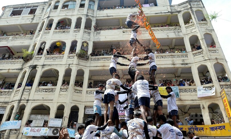 「ダヒ・ハンディ(Dahi Handi)」と呼ばれるこの祭典はヒンズー教のクリシュナ(Krishna)神をたたえるもので、今年の開催を来週に控える。複数のグループが人間ピラミッドの高さを競い合い、少年たちがそれによじ登っていく。高さは13メートルに達することもあり、毎年多数の見物客を集めている。