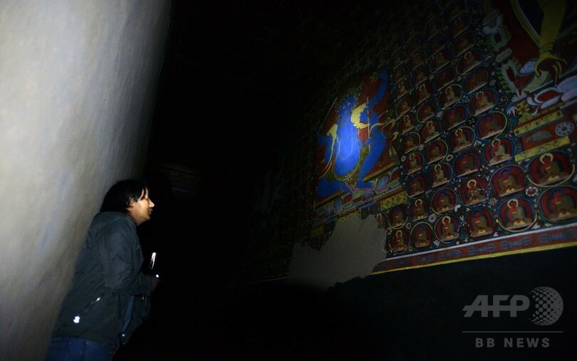 【11月29日 AFP】ネパールの人里離れたアッパームスタン(Upper Mustang)にある古い僧院の奥深くで、神聖な壁画を修復し、伝統的なチベット仏教文化を保存する闘いが本格化している。